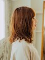 ブラウンベージュの落ち着いたトレンドカラーに骨格に合わせたミディアムカットで小顔効果に!前髪は少し重めに作ることでかわいらしい印象になります。スタイリングは外ハネベースにゆるく巻いて、ふわふわとした質感を出すのがポイント!