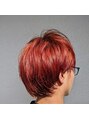 メンズヘアーブリーチ後ビビッドなレッドカラーに!
