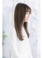 ローレイヤーのストレートロングは、潤いたっぷりのツヤカラーとシースルーバングで透明感を演出。しっとりまとまりつつもニュアンス感ある動きが出て、甘辛MIXな雰囲気に。サイドの毛流れで輪郭カバーすれば小顔見せ効果も◎耳かけしても大人かわいい。