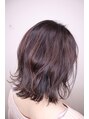 ミディアムラインで人気の外はねスタイルです♪伸ばしかけの方にも簡単スタイリングでふわふわのかわいい仕上がりになります。カラーは透明感あるラベンダー系で。