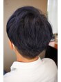 大好評メンズマッシュにツーブロックを入れて、ブリーチオンカラーでブルーブラックを入れ大人かっこいいスタイルに♪一見落ち着いた暗いカラーですが、ブリーチを入れてからのブルーブラックで透明感あるカラーに!