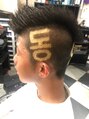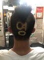 刈り上げ部分にハングル文字をカラーで浮かせているバリカンアートです。