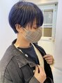 前髪は下ろしても分けてもかわいいスタイルです。前髪長めに飽きてきた方には特におすすめです◎カラーはケアブリーチをした後に深めのブルーカラーです。退色もグレーっぽく抜けていくので楽しめます!