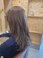 顔まわりはすっきりレイヤーカットし、毛先に厚みを持たせたトレンド真っ只中なスタイルです。毛先はコテでランダムなカールと、カラーは透明感のある外国人風なベージュカラーに。