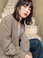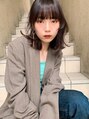顔まわりに後れ毛レイヤーとトップをふんわりさせた切りっぱなしのミディアムヘア!前髪はシースルーバングでサラッと束感、顔にかかるサイドの後れ毛は動きプラスと小顔に見せる。耳かけやアレンジも映えます♪イノアパープルカラーでツヤ透明感!