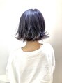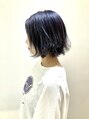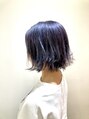 ブリーチをしていて何色かヴィヴィッドな色が入っているお客様が暗めにして一色にしたいということでかなり暗めのパープルの原色系で染めました。ピンクやグリーン系の色が入っていたので、補色であるパープルだと、それぞれが同系色に落ち着きました。
