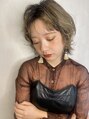 顔まわりにしっかり動きがつく様、細かくレイヤーの入れる角度にこだわりデザインを。前髪をセンターパートで分け、根本を立ち上げたハンサムクールウルフスタイルも◎