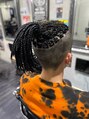エクステでブレイズ40本です。おろしていると肩につくほどの長さです。普段1つにまとめたいということで、前下がりのスタイルに仕上げさせていただきました!毛先は焼き切りタイプです。