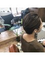 ショートスタイル。しばらくショートにしてて、これから少し上の髪を伸ばしながらショートボブにチェンジしていきます。以前入れたハイライトがまだまだいい仕事してます。