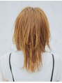 顔周り、トップにレイヤーの入ったウルフスタイル♪カラーは全体的に細かめのハイライトを入れてゴールドベージュ系カラーをオンカラーしています。スタイリングはオイルかバームがオススメ♪アレンジしても顔周りに動きがあるのでとても可愛いです♪♪