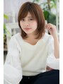 斜めバングで目元を印象つけたナチュラルボブディ。くせ毛風ワンカールでくるんとまとめてニュアンス感ある動きを演出。前下がりで小顔に見せます。耳かけでアシンメトリーにしても大人かわいい。ナチュラルボブやフェミニンボブからの伸ばしかけにオススメ。
