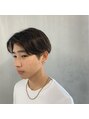 ゆるめのパーマでセンターパートに合わせて流れるようにかかってます^_^ 韓国のメンズ風