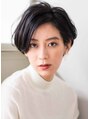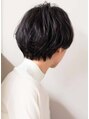 カットは、後頭部にボリュームがでるようグラデーションカットを入れます。前髪は長めにすることでメリハリ感のあるショートスタイルになります。ドライカットのスライドカットで質感を柔らかくみせます。