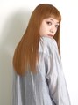 柔らかいオレンジベージュの艶々ロング◎ケアブリーチでダメージを抑えながら好きなカラーを!オン眉バングで個性を演出!