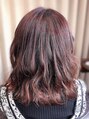 肩にかかるくらいの外ハネしやすい切りっぱなしボブにベリーピンクでカラーしました☆ピンク系はツヤも出て可愛らしく仕上がります。暗めのお洋服にも映えるお色です♪