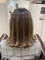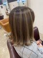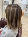 ワンカラーで全体的にカラーをしてそこからシールエクステでハイライト10本つけました