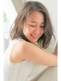 エアリーなふわくしゅ感が大人かわいい、ラフ&カジュアルなフェミニンボブ!肩にあたってハネるぐらいの長さは、むしろハネさせてランダムに動く毛先が洒落感アップ!カラーは透明感のあるスモーキーベージュ!顔周りにかかる、かきあげバングで小顔見せも◎