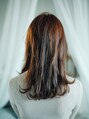 Aラインのミディアムスタイルにハイレイヤーが入りひし形のシルエットにもなる万能スタイルです!!カラーはツヤ感のあるオレンジベージュがベースでハイライトも入っていて巻いたり、風になびくとキレイにスジが出るようになってます。
