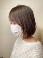 長く人気なプツンとボブ!スタイリングが楽チンが人気の理由!内巻きも外ハネもどちらもバランスのとれるスタイルです!カラーは透明感アッシュベージュに!