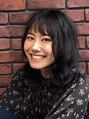 鎖骨くらいの長さ設定のミディアムボブ☆ラインは重めですが、カールで動きを出しています。