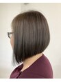サイドを長めに残し、衿足ギリギリに切ったボブ
