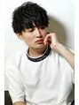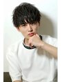 王道マッシュにクロスさせた前髪がポイント。マッシュにシャープな印象を与える新しいヘアスタイル
