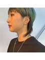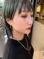 ハイトーンマッシュウルフを細かいセクションでツートンに仕上げたグリーンカラーのヘアスタイル。フロントはしっかりマッシュに。