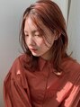 鎖骨下のレイヤーセミディ。軽やかに動く質感調整でセルフセットもしやすいソフトウルフスタイルです。っ透明感のあるオレンジカラーでオシャレ度アップ。アンダーを外ハネに、トップを内巻きに巻く簡単スタイリング。仕上げはN.ポリッシュオイルがおすすめ。
