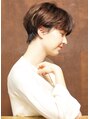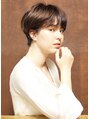 丸みのある柔らかなショートヘアです。動きが出やすいようにトップにレイヤーをプラス。後頭部の丸みから襟足はスッキリさせることで、頭の形と首元をキレイに見せる効果があります。ゆるくパーマをかけるとより柔らかさが出ます。
