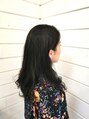 ダーク系のオリーブカラーで赤みを抑えました。レイヤーを少し入れるだけで、ロングレングスでも動きをつける事が可能になります。