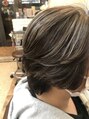 ケアブリーチを使ったハイライトスタイル シルバー系は、ハイブリーチを2回は必要となります。グレージュ シルバー ピンク系ブリーチも対応可能 透明感と立体感がでます。白髪対策として白髪ぼかしとしてハイライトを入れるのもオススメです