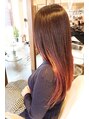 バレイヤージュ!落ち着いたグレージュからの毛先深みの有るブロッサムレッドです。