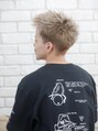 サイド、ネープはグラデーションでカット。ソフトツーブロックに。トップは長めに残しアシンメトリーに。