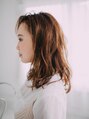 ミディアムロングにカールを加えたパーマスタイルです!カールは全体に大きくゆるっとしているのでがんばりすぎていない感じがちょうどいいスタイル!