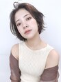 26mmのコテで全体的に外ハネにしLINCバームでウェットにします。【気に入ったスタイルは「ブックマークする」ボタンを押して、ご来店時ご提示ください】暖色系カラー,パープルカラー,艶カラー,ショートバング,春カラー,外人風カラー,ハイライトグラデーション