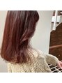ベースは深い赤で、ポイントカラーで耳周りにグレージュをいれています。顔まわりは軽く巻くだけで可愛いようにひとりひとりに合わせて切っています(^_^)