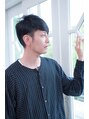 サイドからバックまで刈り込んで上からかぶせたツーブロックスタイル。あまり丸いシルエットにならないようにタイトにスタイリング。ビジネスでもカジュアルでも決まる甘すぎない大人スタイルがおすすめ。
