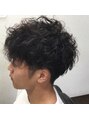 ツイストスパイラルパーマ爽やか黒髪ツーブロックスタイル