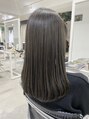 [気にに入って頂いたスタイルは、ブックマークをしてご提示ください] アディクシーカラー 深みのあるグレーアッシュ 。ワンカールでツヤのあるセミロングスタイル。
