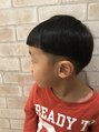 コボちゃんをイメージして下はスッキリ刈って、上は重めのぱっつん感を出しました!年齢が小さい子供ちゃんにもってこいのスタイルです♪