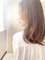 前髪を立ち上げて頬骨からサイドに流すことで小顔効果を出しています。ベージュ系のカラーで柔らかい雰囲気に。≪心斎橋&なんば≫