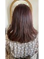 ピンクラベンダーの毛先カールスタイルです。ピンク系カラーもラベンダー系は落ち着いた雰囲気なので洋服にも馴染みやすい色味です。色味維持にはカラーシャンプーもおすすめです。カットはレイヤーを入れて軽さを出してます。