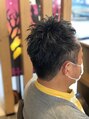 休日でもカッコいいおしゃれパパスタイルにしあげました!サイドとえりあしはスッキリと刈上げトップに動きをつけて、全体に動きをつけてみました!