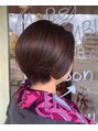 イルミナカラーサファリを使用した艶カラー。シアーベージュは、上品な仕上がりで大人女性に大人気!!気になる白髪もカバーします!ショートスタイルも、変化をつけて楽しみましょう!素敵ショートボブスタイル!!