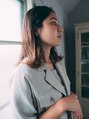 ミディアムレングスの外ハネスタイルです。肩に当たってハネやすいながさもあえてハネさせることによってスマートにみせることができます。カラーは艶感がでやすいブラウン系です。スタイリング剤は艶感がでるオイル又はバームがおすすめです。