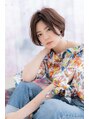 センターパート×無造作カールのココアブラウンひし形ショートb/ホットペッパービューティー