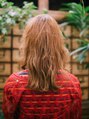 センターで分けた髪の毛を全体的に26ミリのコテを使ってウェーブ巻き、毛先は外になるように巻いて前髪は外巻きにします。カラーはオレンジ系のカラーに。