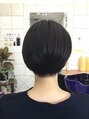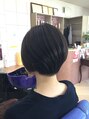 コンパクトなミニショート☆全体の丸さがかわいいですね♪襟足はできるだけタイトにカット耳にかけてもいいように毛量調節を。