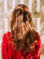 レイヤーロングスタイルです!レイヤーが入ることで全体を軽くみせてくれます。センター分けの前髪に、全体をウェーブのスタイルに!