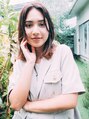 ミディアムレングスの外ハネスタイルです。肩に当たってハネやすいながさもあえてハネさせることによってスマートにみせることができます。カラーは艶感がでやすいブラウン系です。スタイリング剤は艶感がでるオイル又はバームがおすすめです。